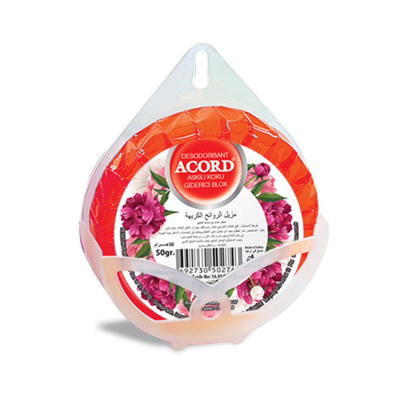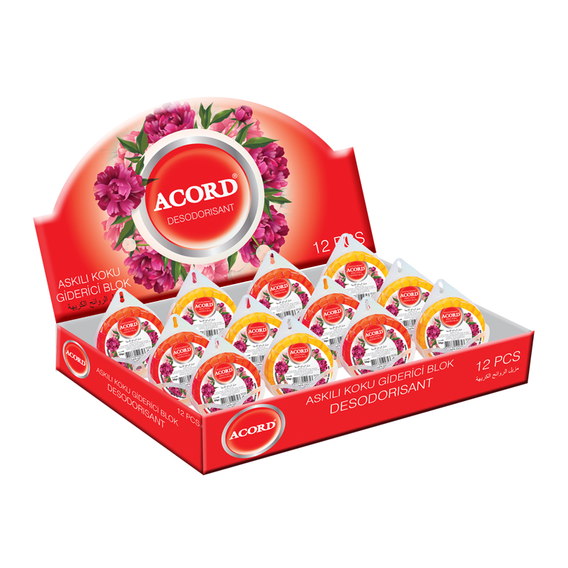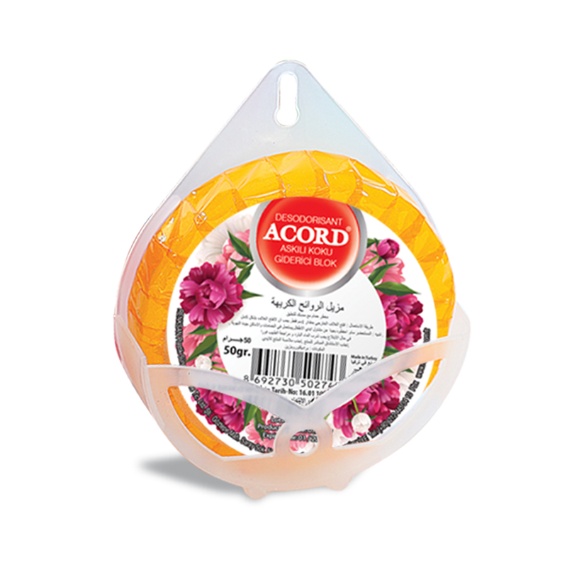“Acord Deodoriser Block” suppresses bad odours and leaves a pleasant smell in toilets and bathrooms.